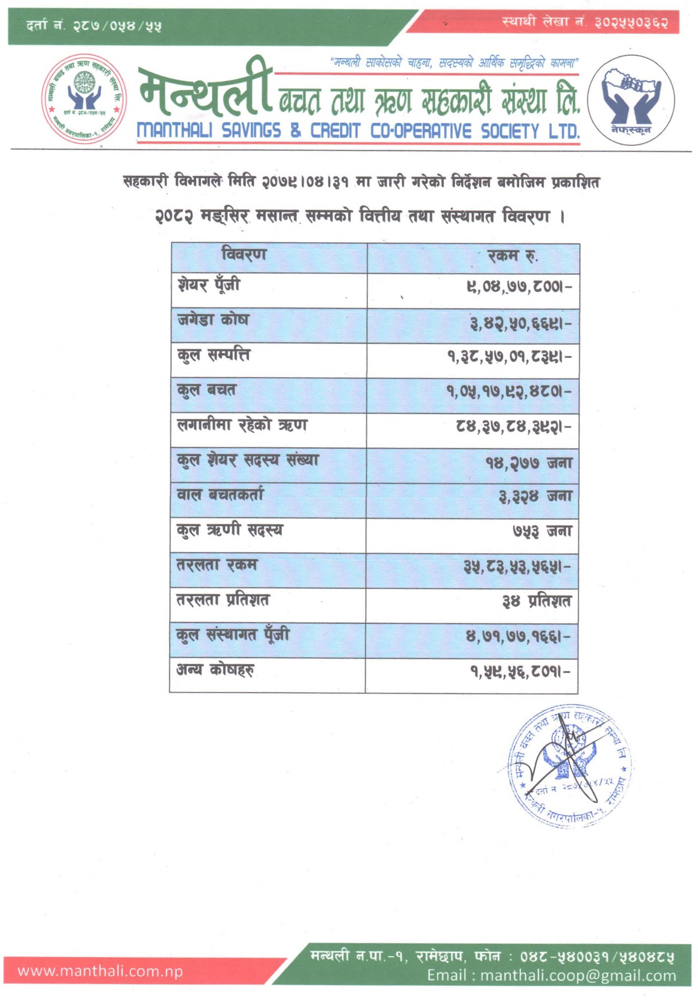 ऋण सहकारी संस्था लि. (मन्थली साकोस) २०५४ साल माघ २० गते जिल्ला सहकारी