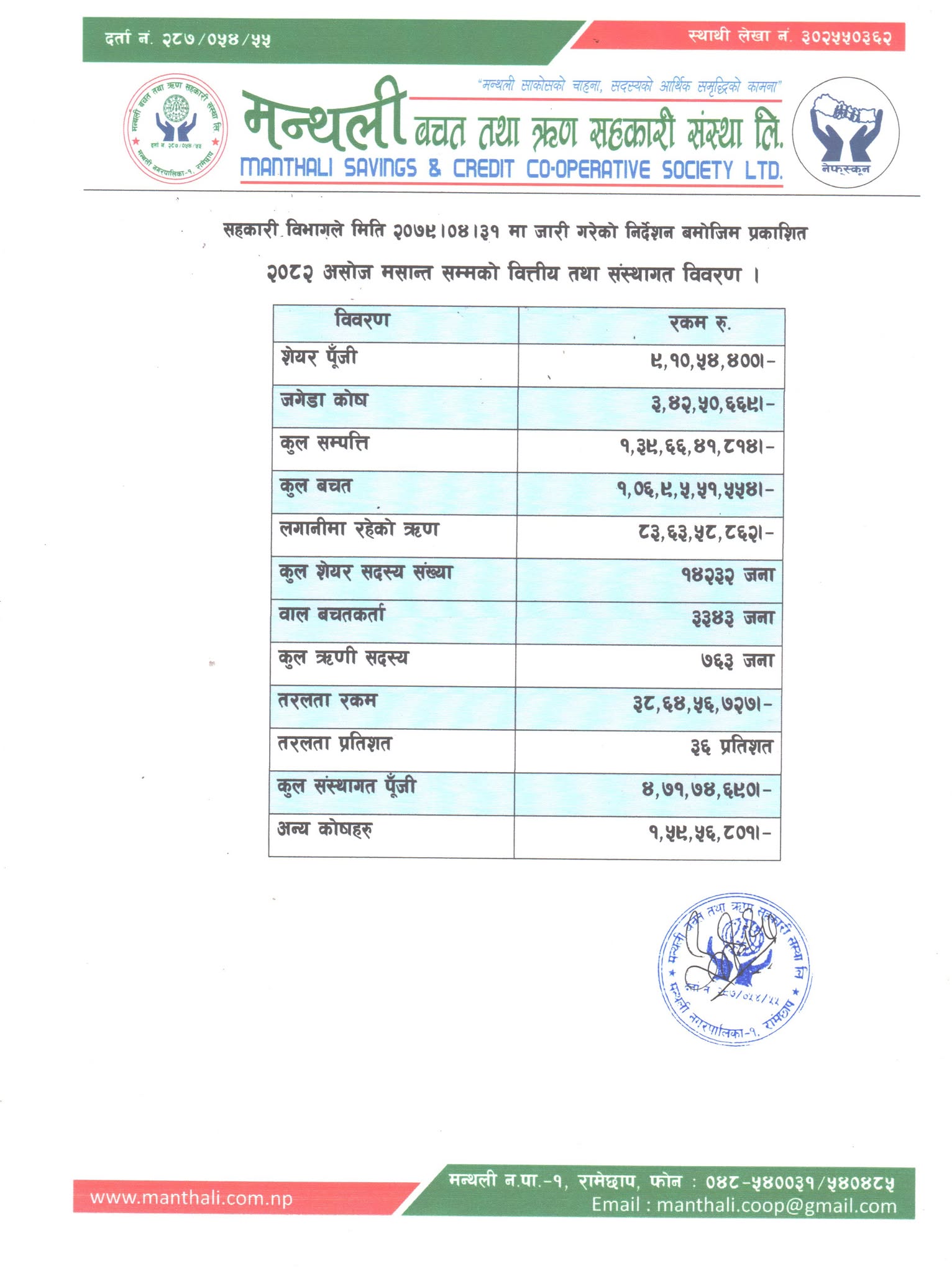 संस्थाको मिति २०८२ कात्तिक १५ मा संचालक समिति तथा