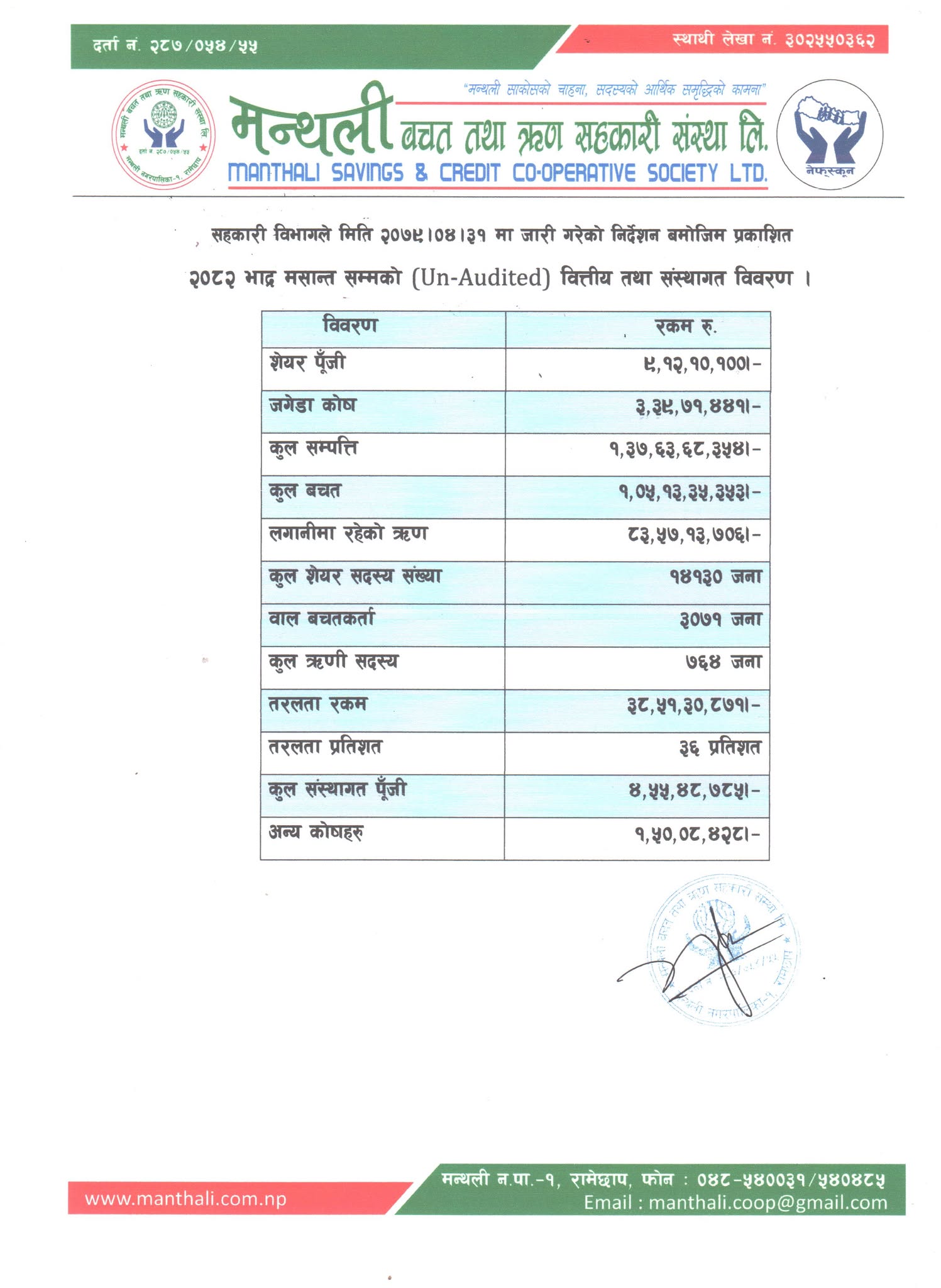 ऋण सहकारी संस्था लि. (मन्थली साकोस) २०५४ साल माघ २० गते जिल्ला सहकारी