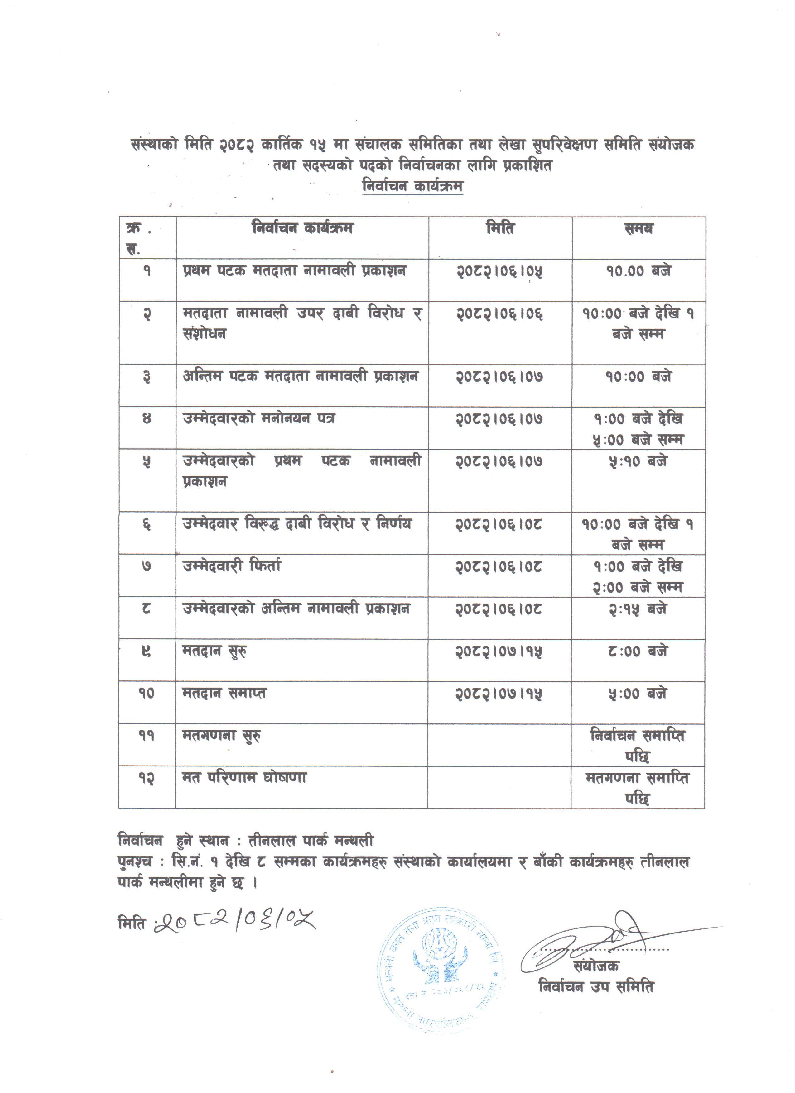 संस्थाको मिति २०८२ कात्तिक १५ मा संचालक समिति तथा